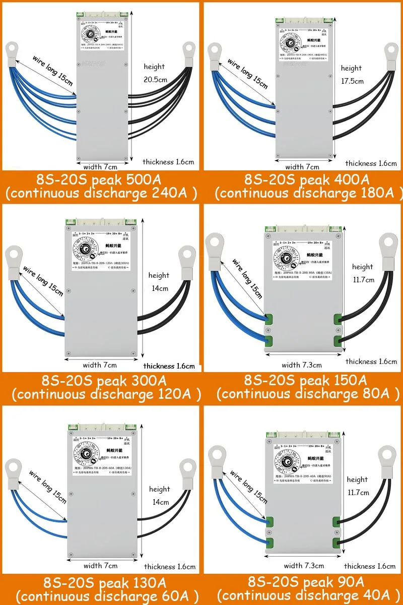 8S sampai 20S 500A ukuran: 20.5CM * 7CM * 1.7CM