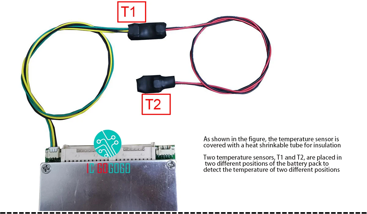 40A BMS: (Continuous current: 40A, Peak current: 90A)