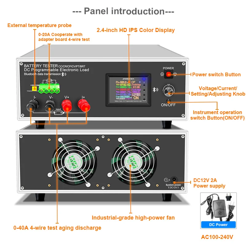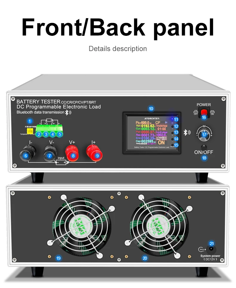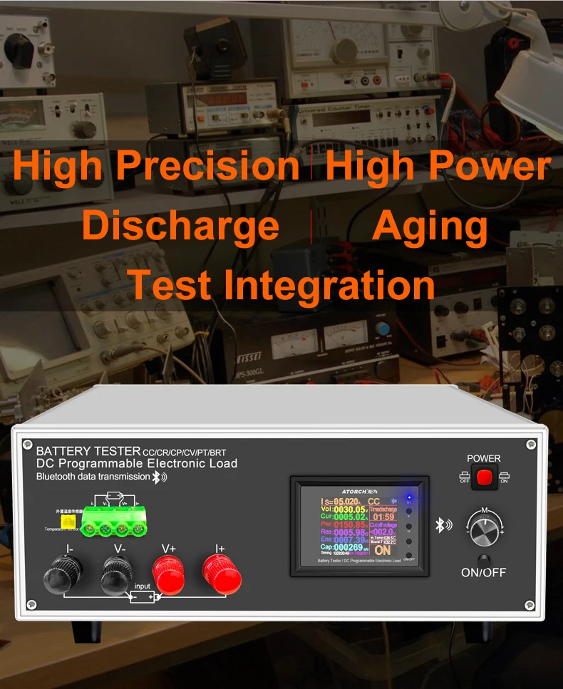 The tester is designed for the discharge of various batteries,18650 battery,car battery including NiMH, NiCd, LiPo, LiFe and Pb, as well as capacity testing.
