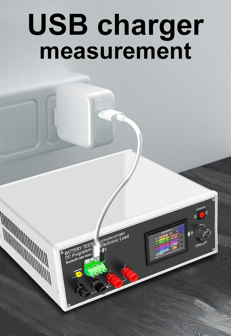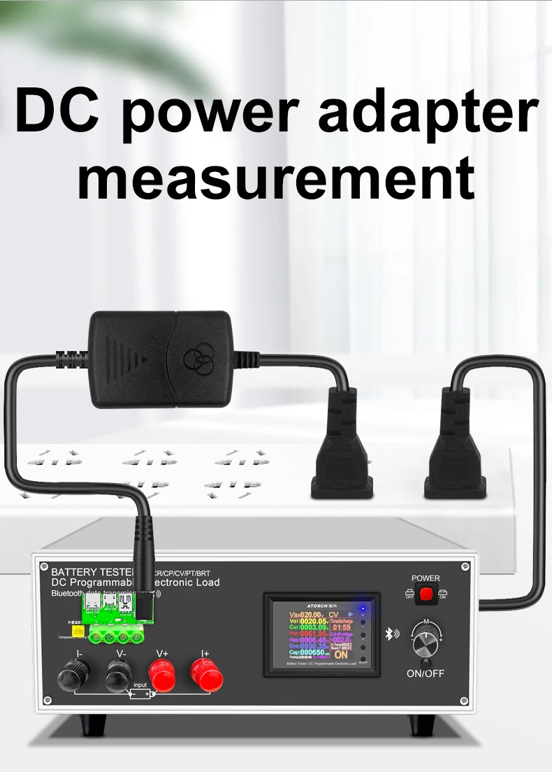 Play and measure the current, voltage, power and other parameters of various DC power adapters