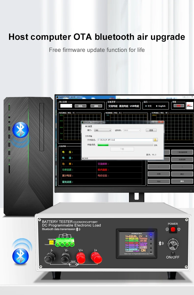 2.8 PC connection: The tester can be connected to the computer through Bluetooth to achieve more functions, such as graphics, calibration, firmware upgrades, and test cycles.