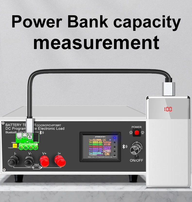 This tester supports discharging of mobile power supply and capacity test.