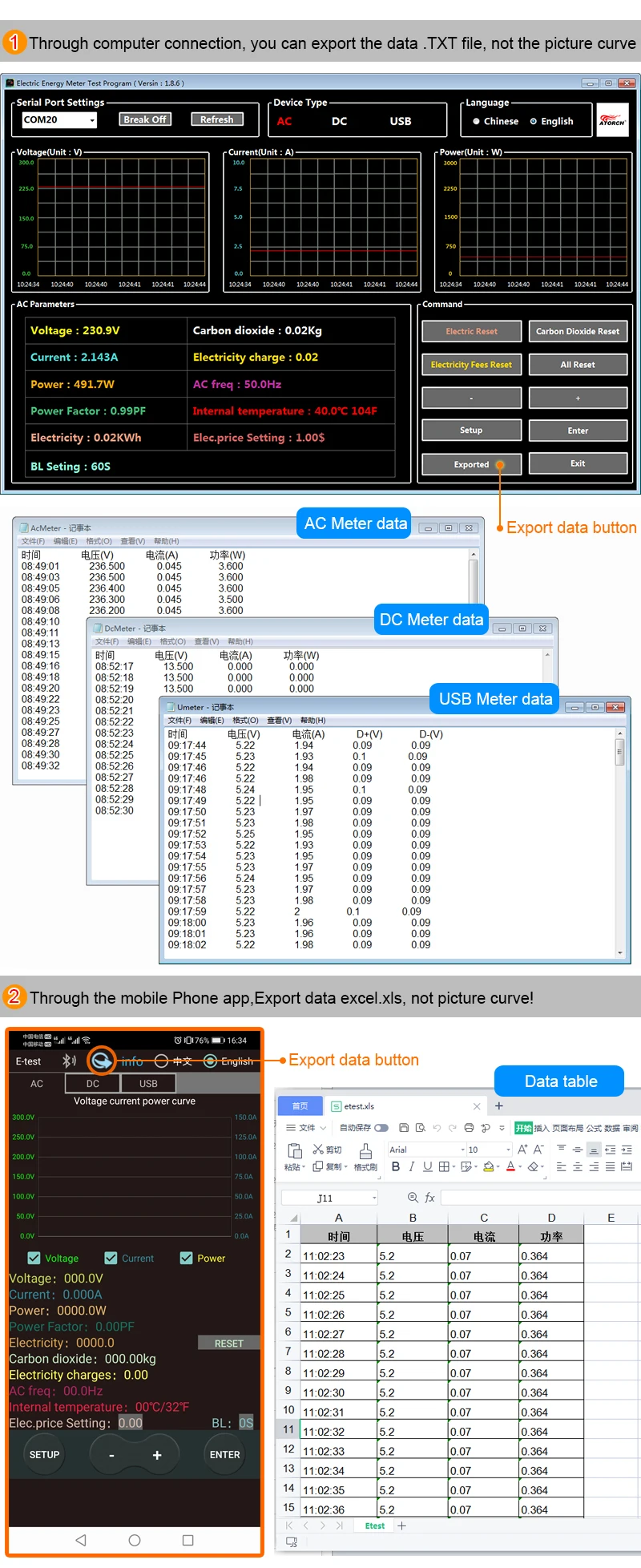 2.7 IPS display: voltage, current, time, capacity, power, electric energy, etc.