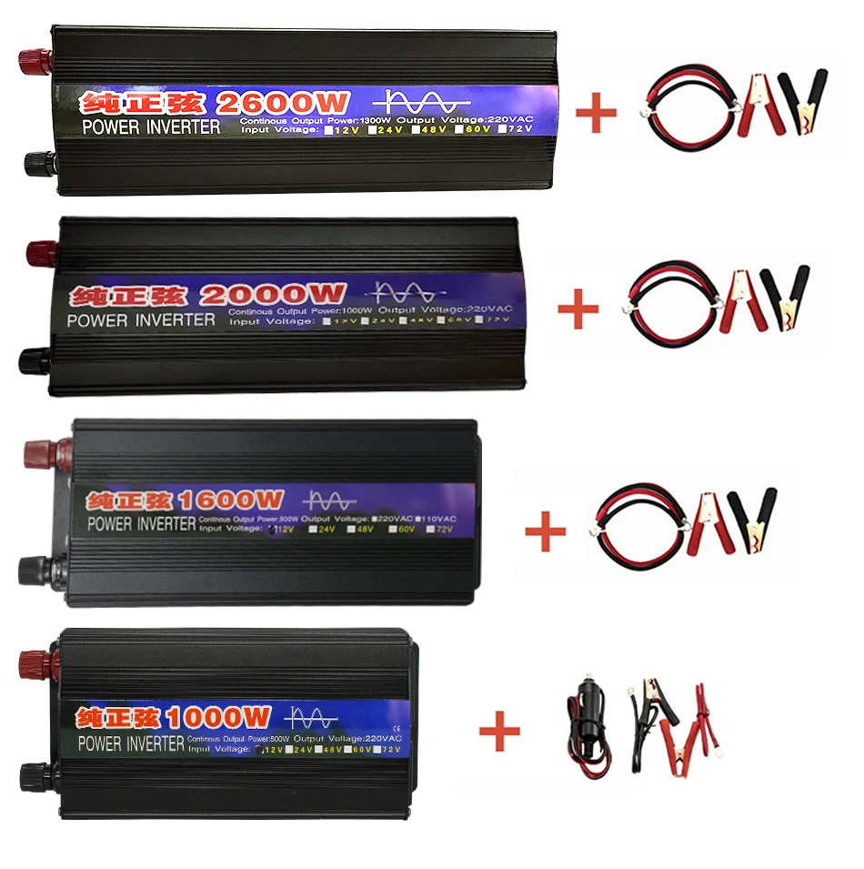 Pure Sine Wave Power Inverter DC 12V 24V 48V To AC 220V Voltage 50Hz 3000W 2600W 2000W 1600W 1000W Connector Car Inverter