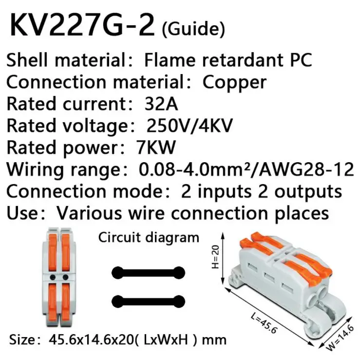 The KV227G series compact splicing connectors make the connecting easily save time and money in distribution boxes or junction boxes.With the compact body, we can make connecting possible to be done in the narrow space and enable the high wiring density.