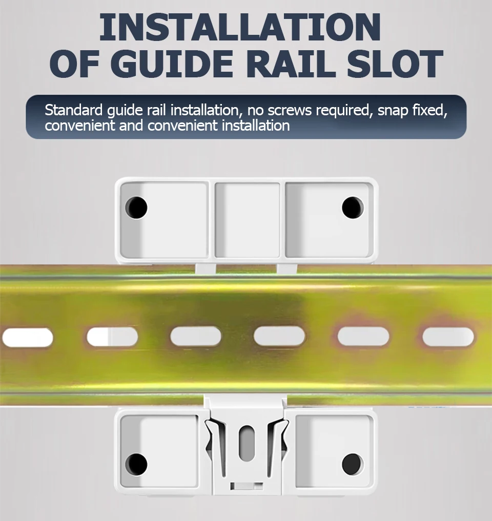 ▶ Guide Rail Slot Installation: Standard guide rail installation, no screws, snap-on mounting, convenient and easy to install.