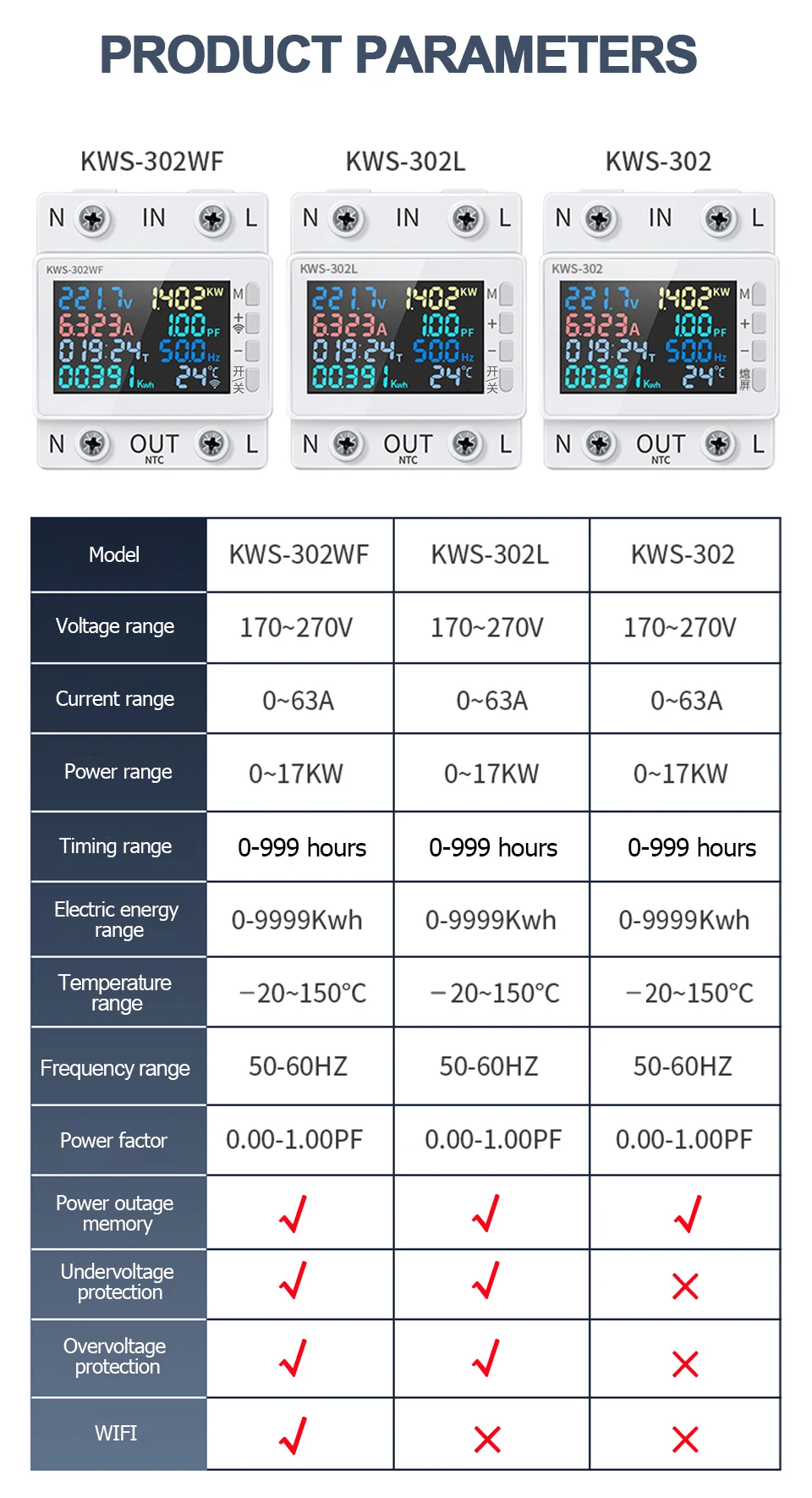 ● WIFI: KWS-302WF Yes, KWS-302L None, KWS-302 None