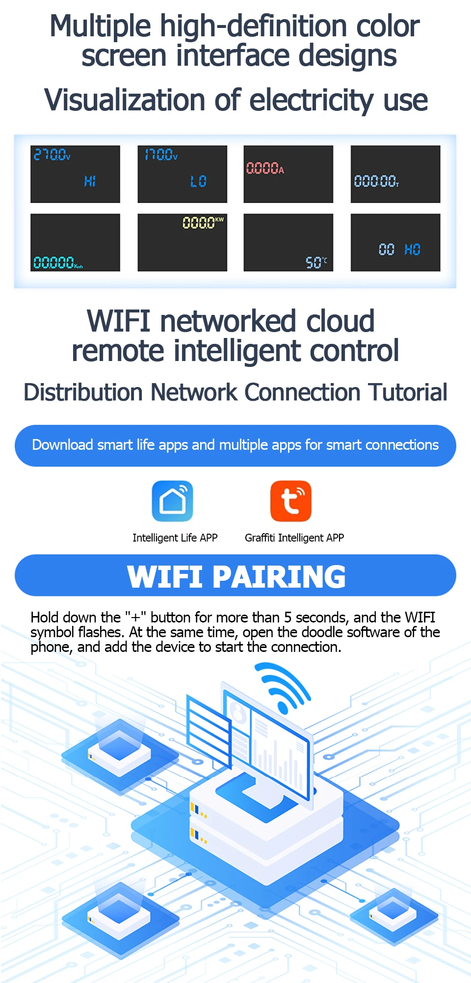 ▶ Multi-color Screen Interface Design: New intelligent design, higher definition interface, more accurate data display, more convenient operation, safer electricity use.