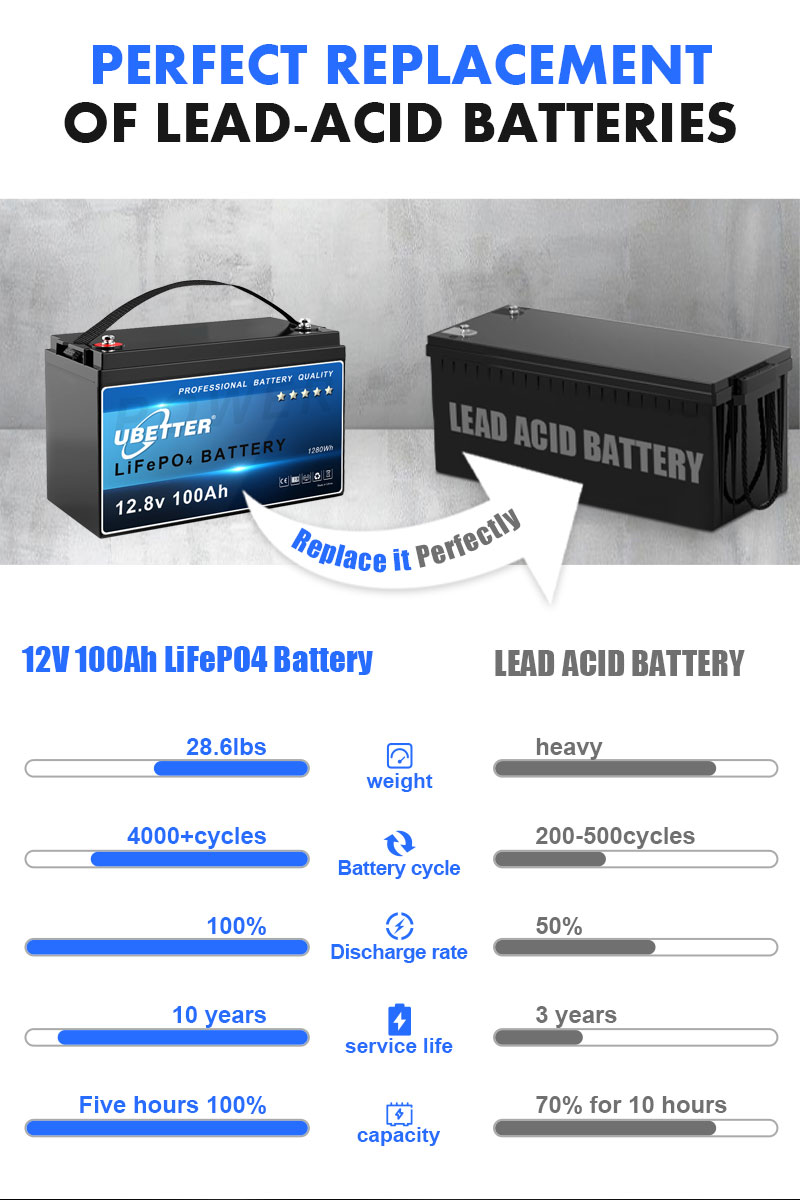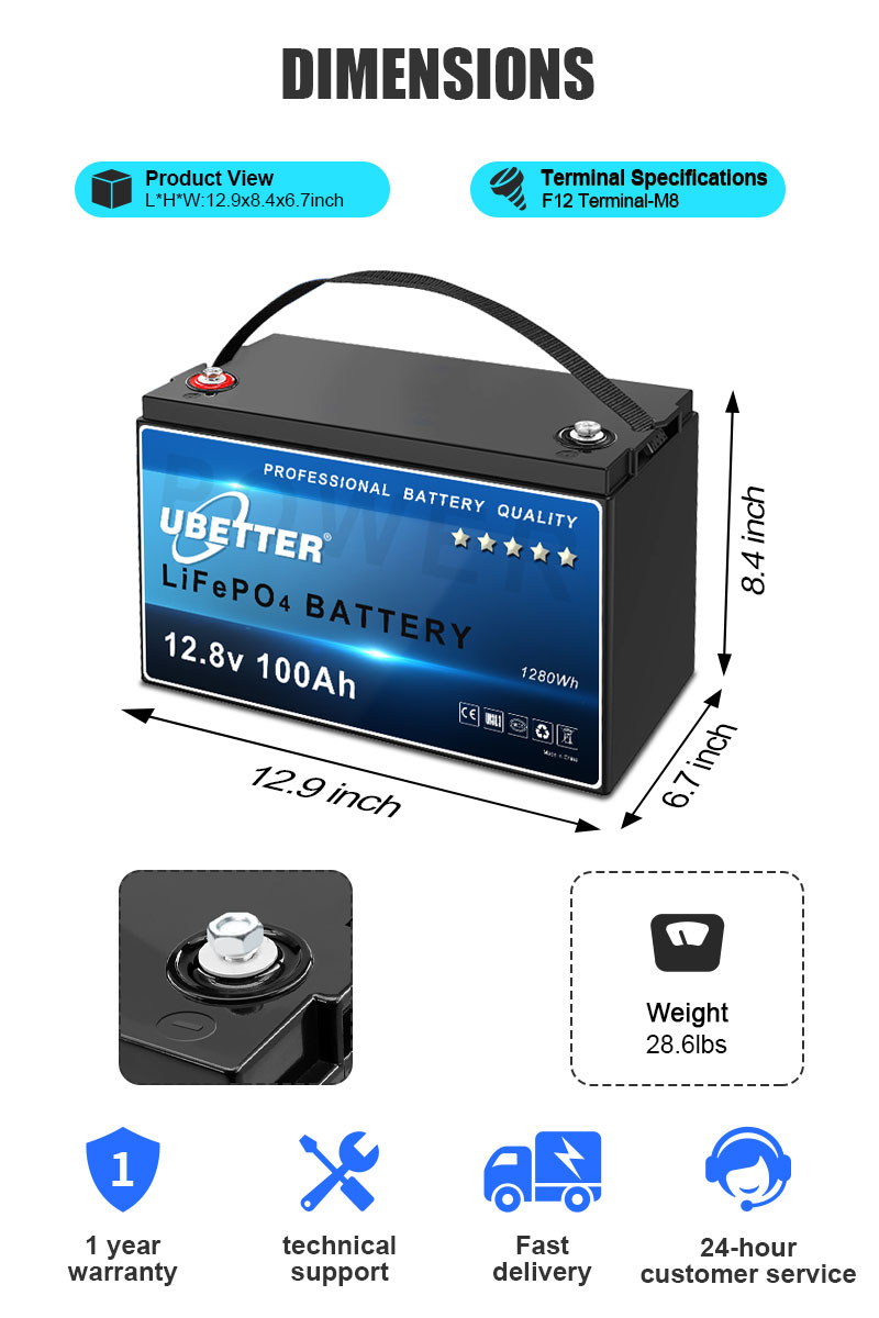 12v 100ah lithium-ion deep cycle battery provides high-efficiency energy for the device, 100AH 12V LIFEPO4 deep cycle battery produced by Ubetter is durable and safe.