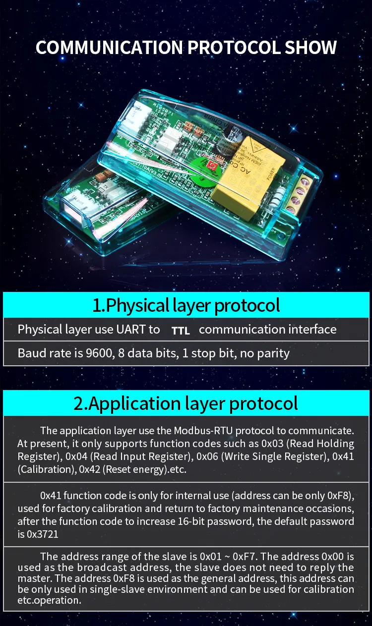 1.2.1 Measuring range: 0~10A(PZEM-004T-10A); 0~100A(PZEM-004T-100A)