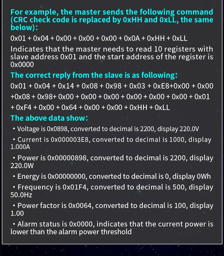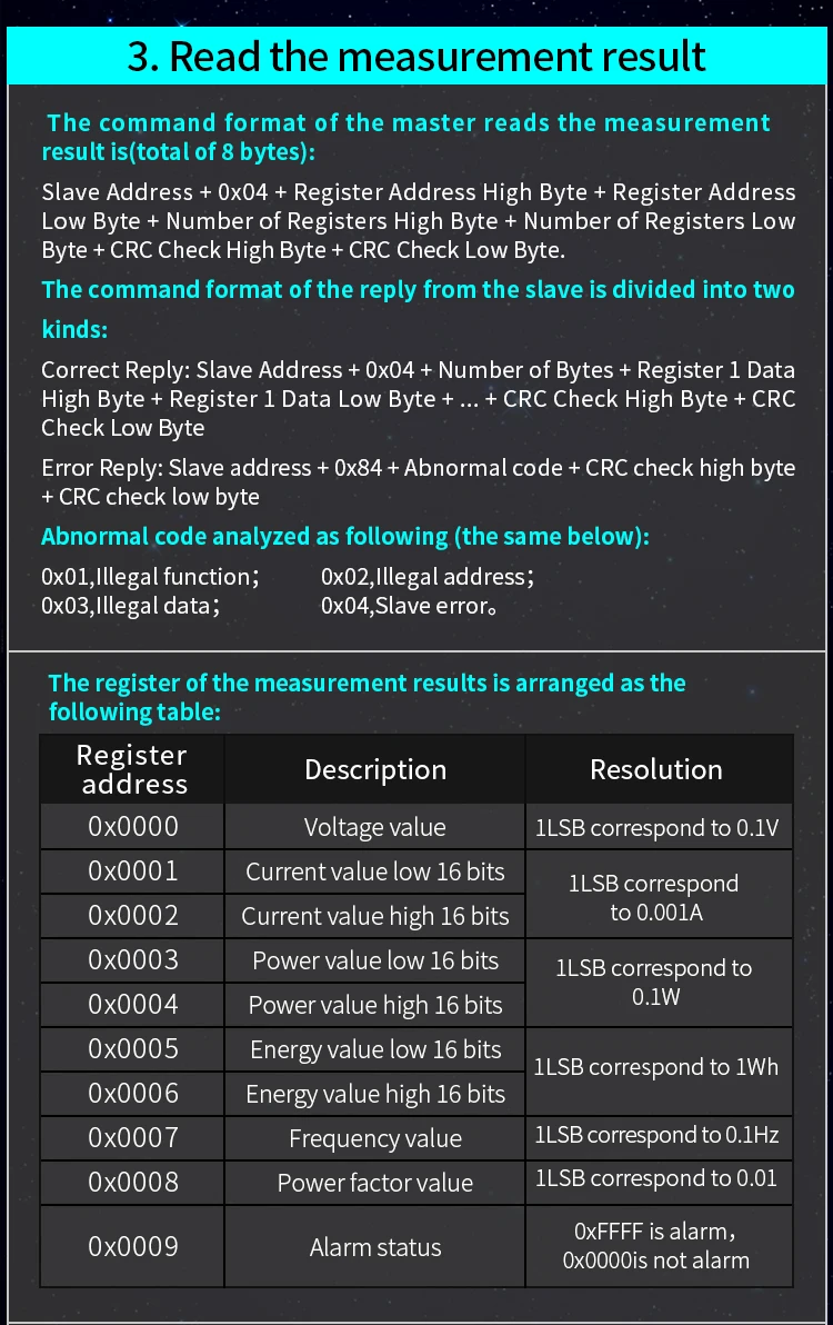 1.2.2 Starting measure current: 0.01A(PZEM-004T-10A); 0.02A(PZEM-004T-100A)