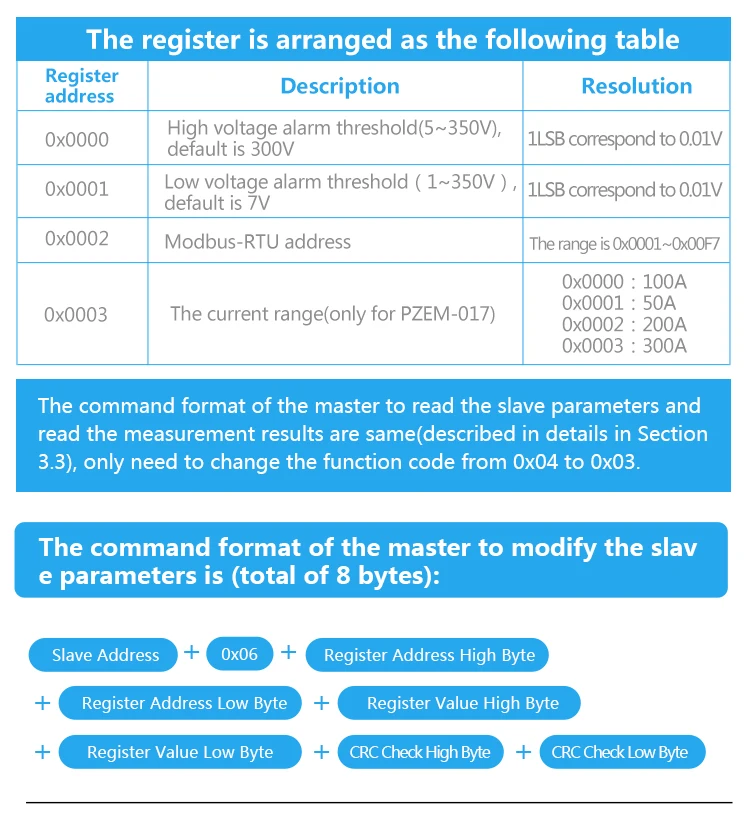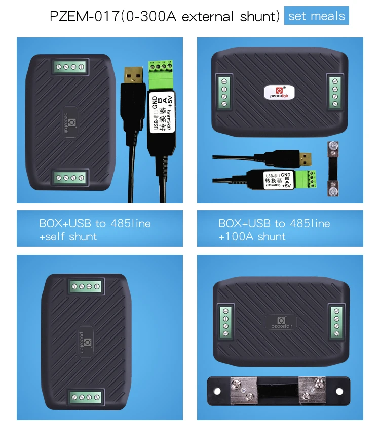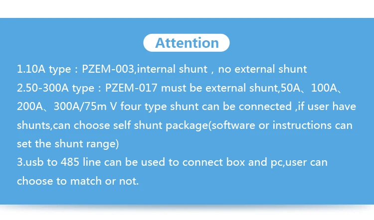 PZEM-017: Measuring Range 50A、100A、200A、300A (the current range is depend on the external shunt specification )