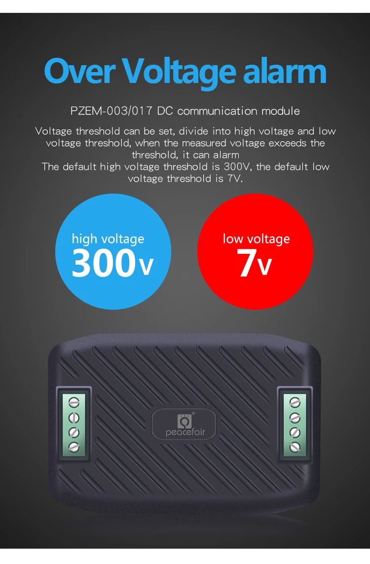 Voltage threshold can be set, divide into high voltage and low voltage threshold, when the measured voltage exceeds the threshold, it can alarm