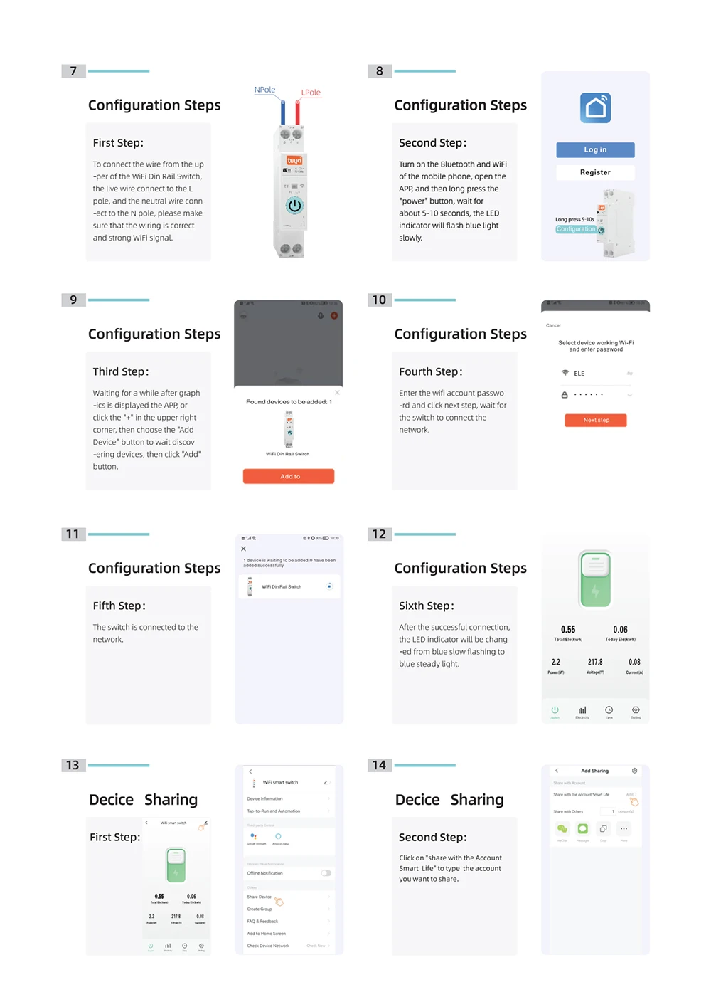 Wiring: Power must enter from the top and must be Live line + Neutral Line (L+N). Live line + Live line (L+L) cannot be used.