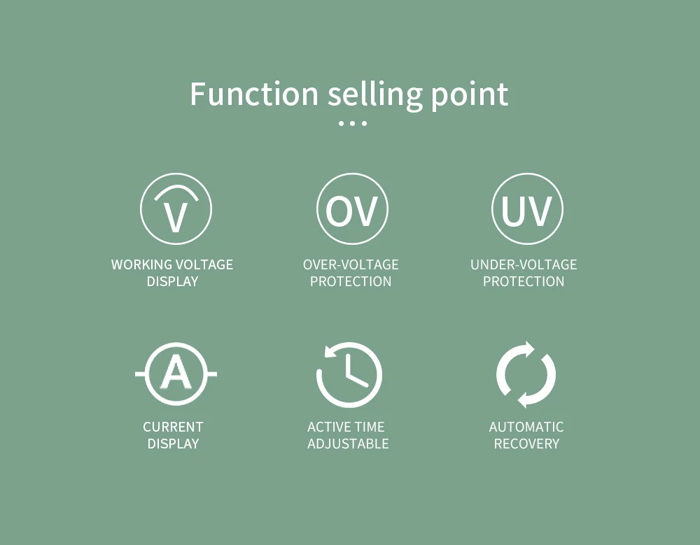 5.Under-voltage protection value range:140V–210V –OFF(default:170V)